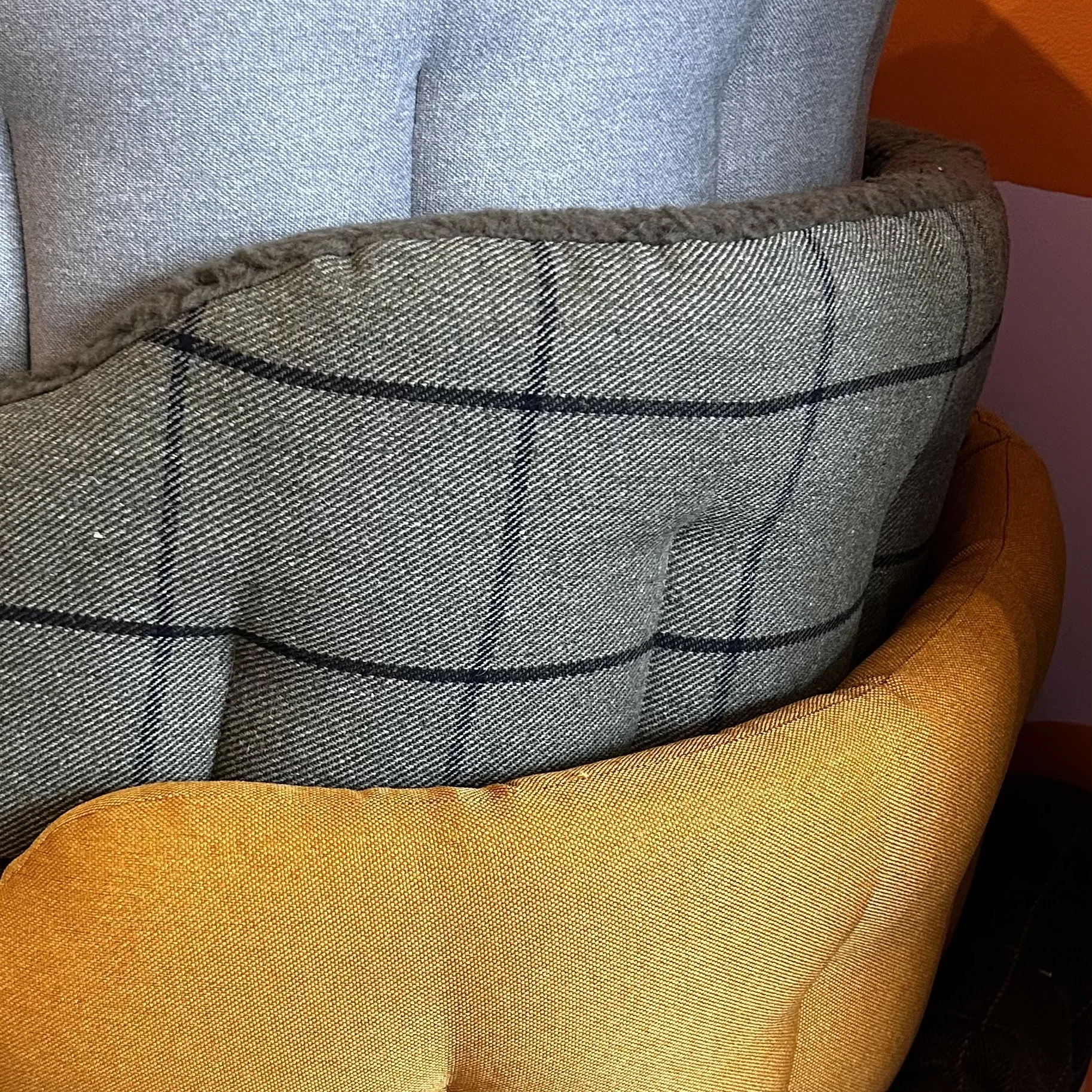 The inner cushion is reversible and removable. Machine Washable at 30 degrees.