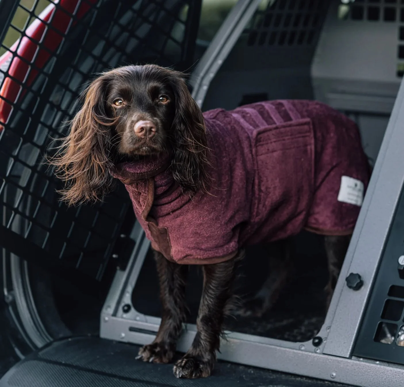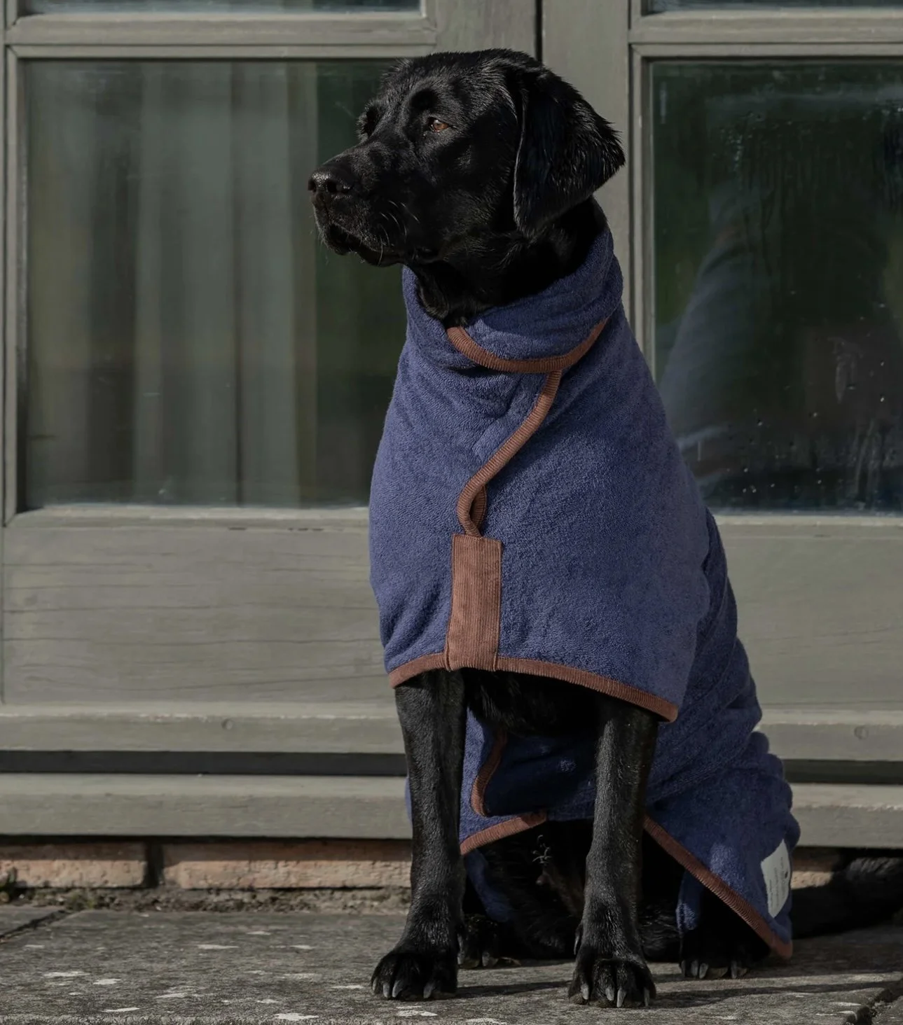 Larry’s drying coat is in constant use - whether it is to save the boot from being splattered in mud, post bath or in sunnier times after a day at the beach.